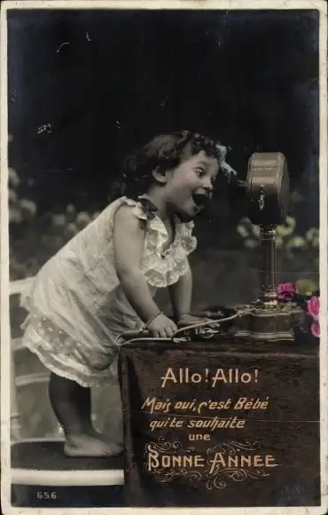 Ak Glückwunsch Neujahr, Kind am Telefon