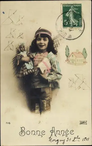 Ak Glückwunsch Neujahr, Kind mit Puppe im Arm