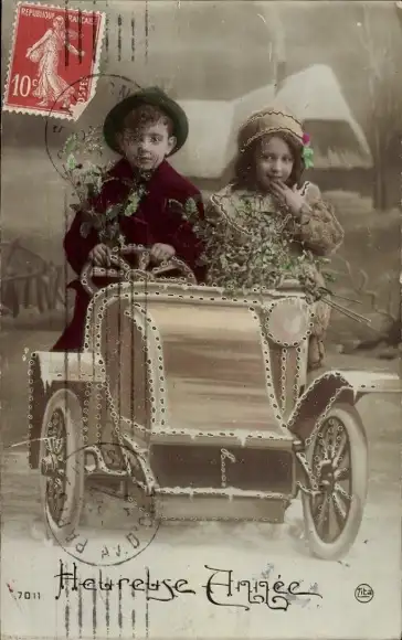 Ak Glückwunsch Neujahr, Kinder, Automobil