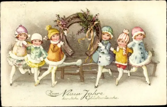 Ak Glückwunsch Neujahr, Kinder, Hufeisen