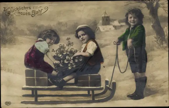 Ak Glückwunsch Neujahr, Kinder, Schlitten