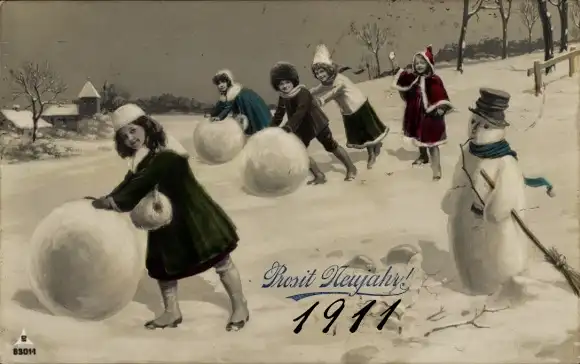 Ak Glückwunsch Neujahr, Kinder, Schneemann