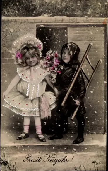 Ak Glückwunsch Neujahr, Kinder, Schornsteinfeger, Leiter