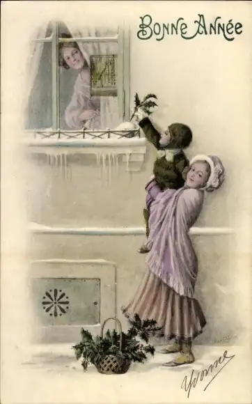 Ak Glückwunsch Neujahr, Kinder, Stechpalme