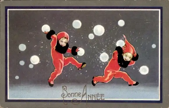 Ak Glückwunsch Neujahr, Kinder bei einer Schneeballschlacht