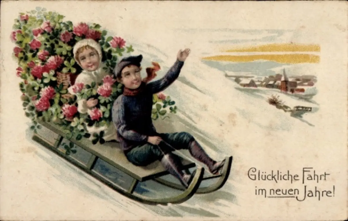 Ak Glückwunsch Neujahr, Kinder beim Schlittenfahren