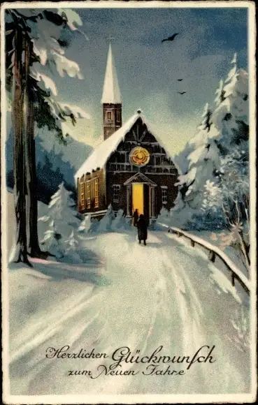 Ak Glückwunsch Neujahr, Kirche, Straßenpartie