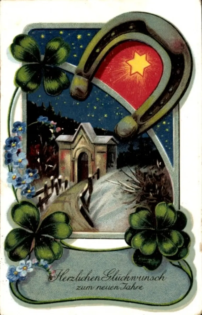 Ak Glückwunsch Neujahr, Kleeblatt, Hufeisen