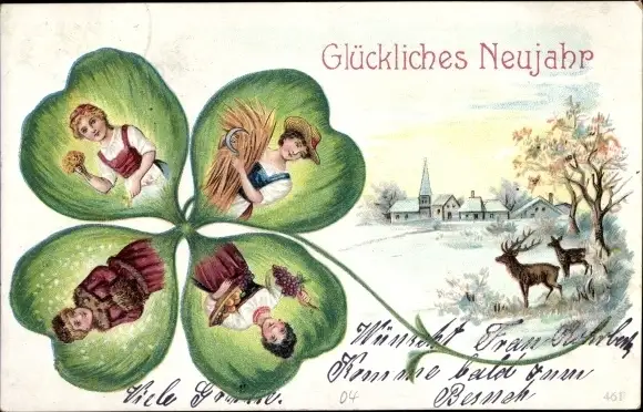 Ak Glückwunsch Neujahr, Kleeblatt, Jahreszeiten Allegorien