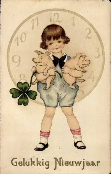 Ak Glückwunsch Neujahr, Kleeblatt, Kind, Ferkel