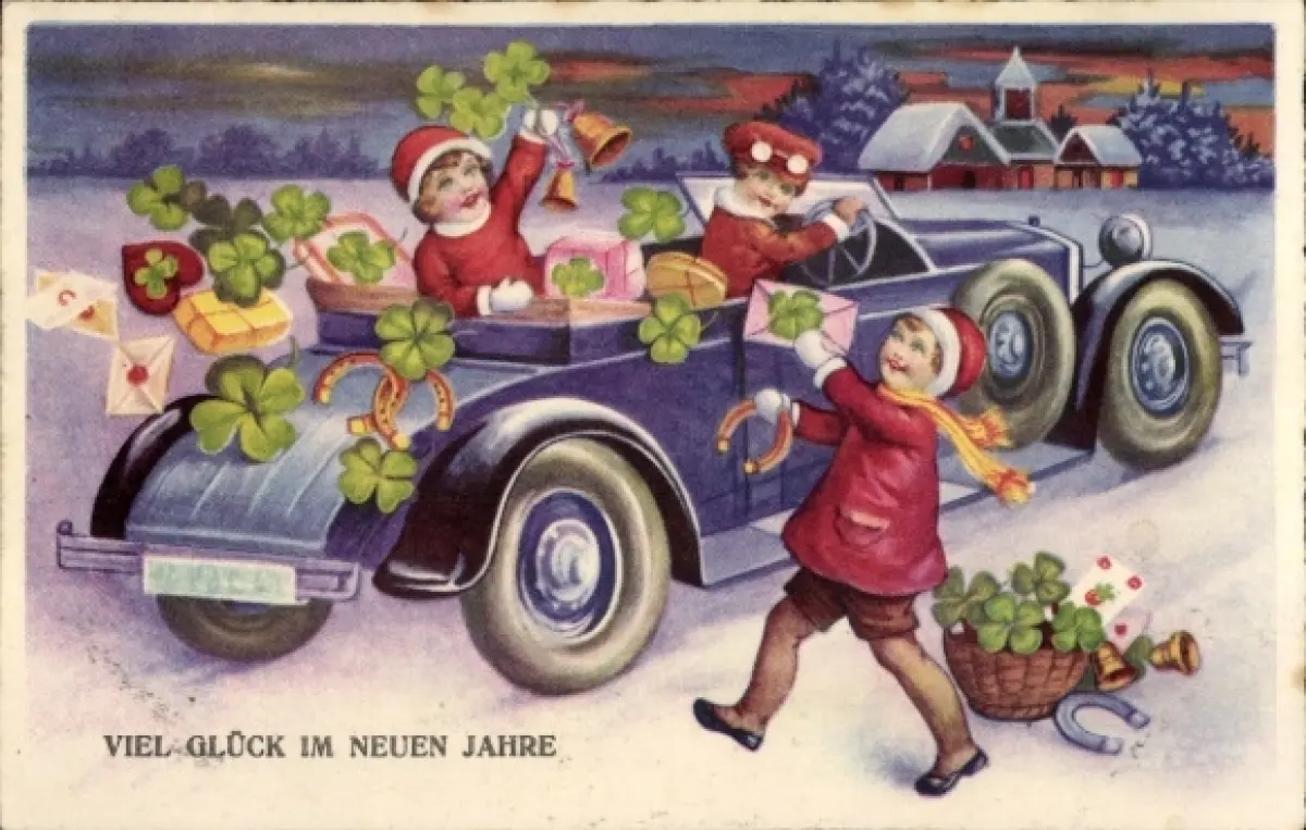 Ak Glückwunsch Neujahr, Kleeblatt, Kinder, Auto