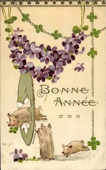 Ak Glückwunsch Neujahr, Kleeblatt, Schweine