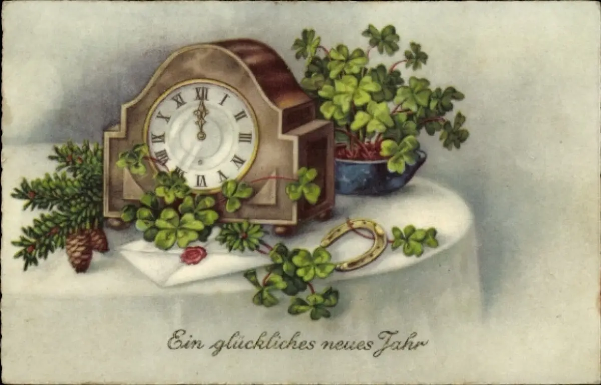 Ak Glückwunsch Neujahr, Kleeblatt, Uhr