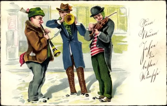 Ak Glückwunsch Neujahr, Konzert, Musikinstrumente, Trompete, Geige