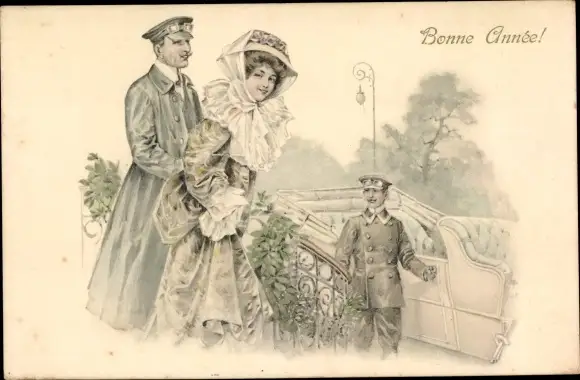 Ak Glückwunsch Neujahr, Liebespaar, Fahrer, Auto