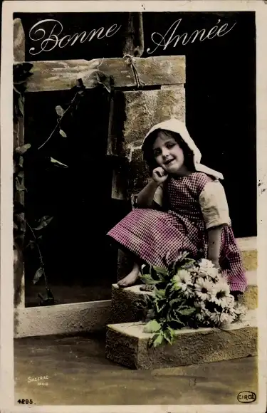 Ak Glückwunsch Neujahr, Mädchen, Blumen