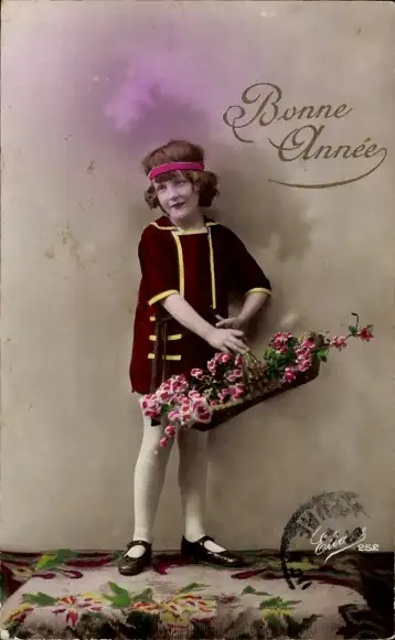 Ak Glückwunsch Neujahr, Mädchen, Blumenkorb