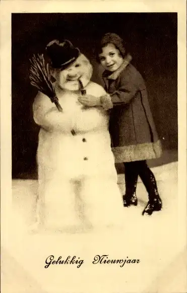 Ak Glückwunsch Neujahr, Mädchen, Schneemann