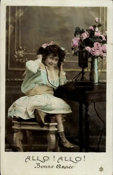 Ak Glückwunsch Neujahr, Mädchen beim Telefonieren