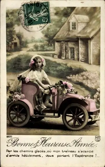 Ak Glückwunsch Neujahr, Mädchen im Auto