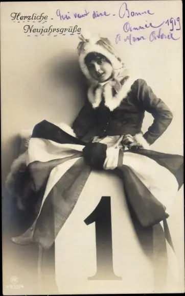 Ak Glückwunsch Neujahr, Mädchen im Wintermantel, Kalender