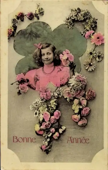 Ak Glückwunsch Neujahr, Mädchen mit Blumen