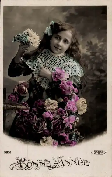 Ak Glückwunsch Neujahr, Mädchen mit Blumen