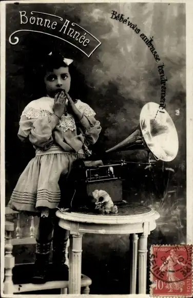 Ak Glückwunsch Neujahr, Mädchen mit Grammophon