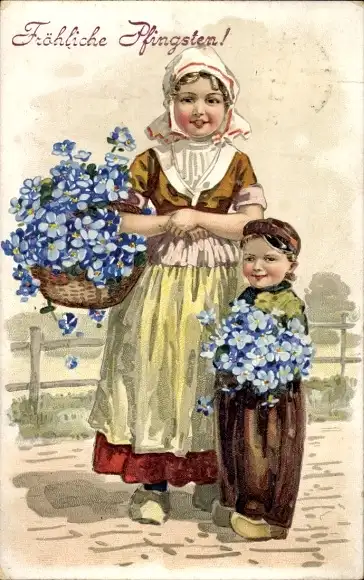 Ak Glückwunsch Neujahr, Mädchen und Junge mit Vergissmeinnicht