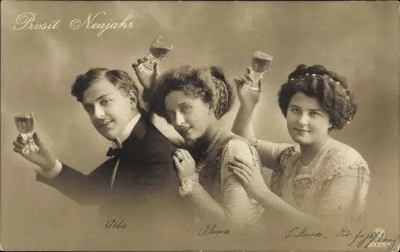 Ak Glückwunsch Neujahr, Menschen mit Sektgläsern, Portrait