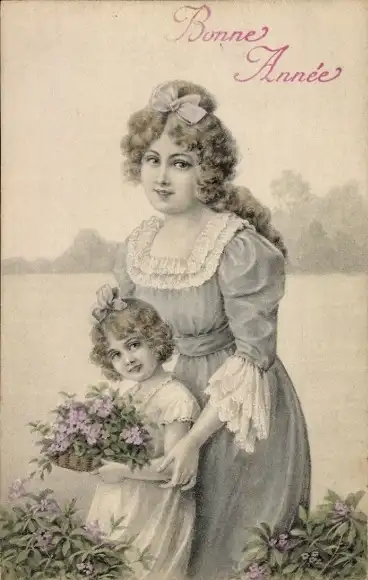 Ak Glückwunsch Neujahr, Mutter mit Tochter
