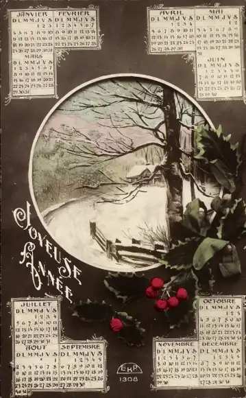 Ak Glückwunsch Neujahr, Ortspartie, Kalender