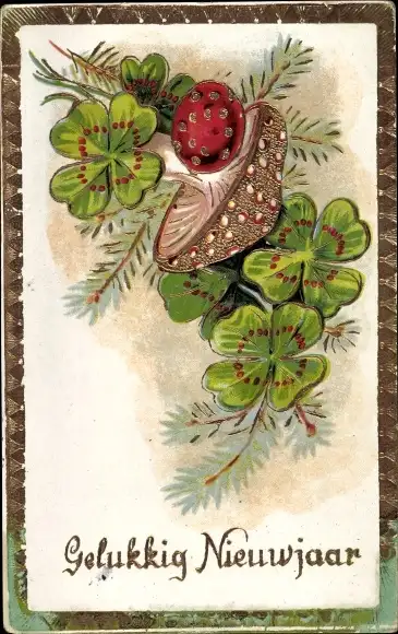Ak Glückwunsch Neujahr, Pilz, Glücksklee