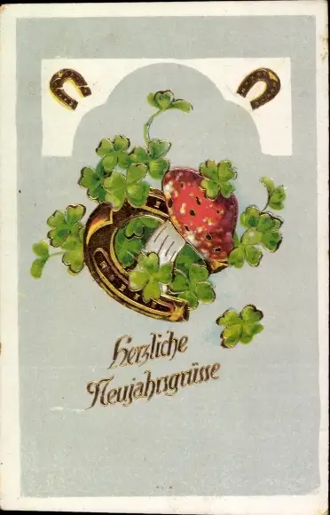 Ak Glückwunsch Neujahr, Pilz, Hufeisen, Glücksklee