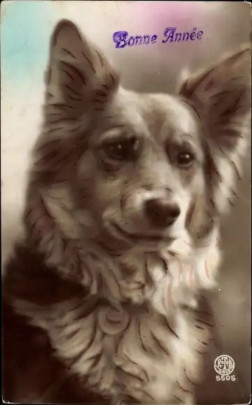 Ak Glückwunsch Neujahr, Portrait eines Hundes