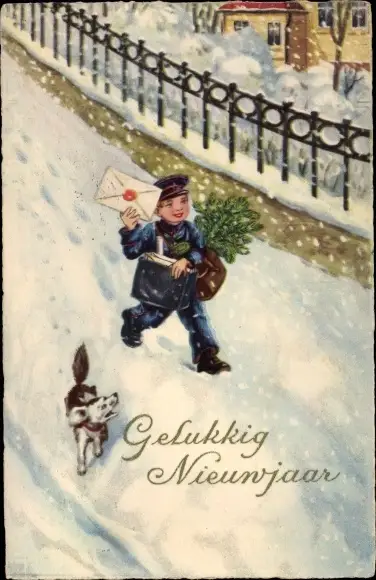 Ak Glückwunsch Neujahr, Postbote verteilt Briefe