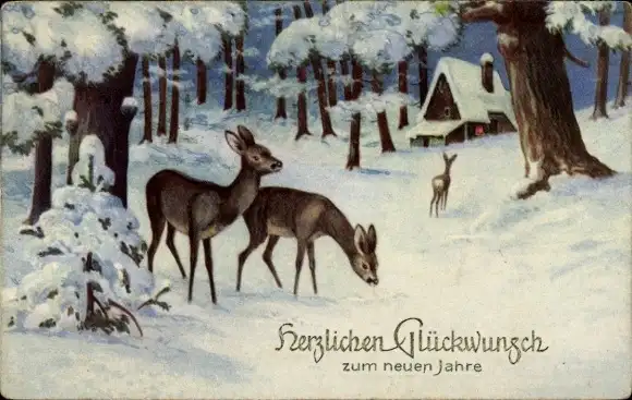 Ak Glückwunsch Neujahr, Rehe, Wald