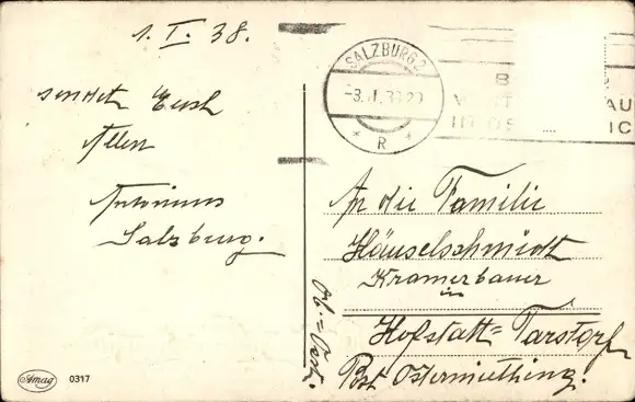 Zustand, siehe Scan, gelaufen, 1938- Amag 317 - ca 14 cm X 9 cm
