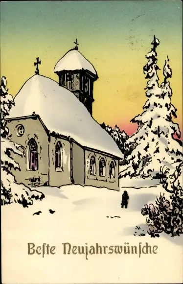 Ak Glückwunsch Neujahr, Schneebedeckte Kirche