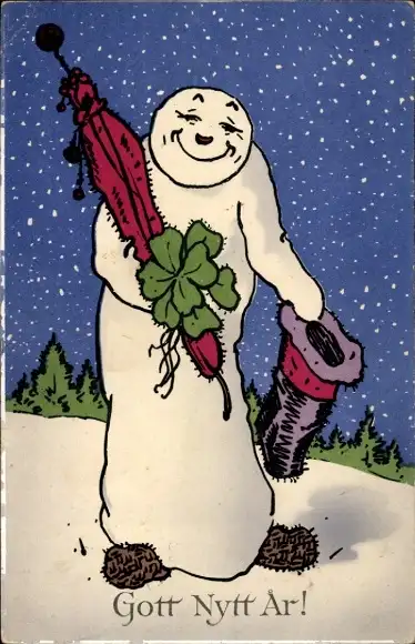 Ak Glückwunsch Neujahr, Schneemann, Glücksklee