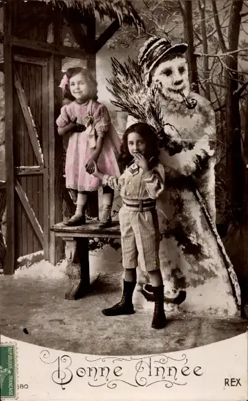 Ak Glückwunsch Neujahr, Schneemann, Kinder