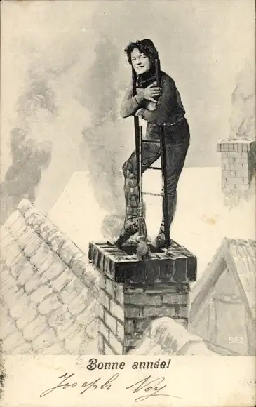 Ak Glückwunsch Neujahr, Schornsteinfeger, Dach
