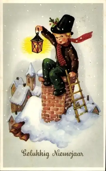 Ak Glückwunsch Neujahr, Schornsteinfeger, Handlaterne