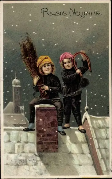 Ak Glückwunsch Neujahr, Schornsteinfeger, Hufeisen