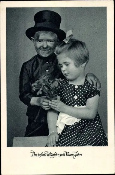 Ak Glückwunsch Neujahr, Schornsteinfeger, Mädchen, Kinder, Kleeblätter