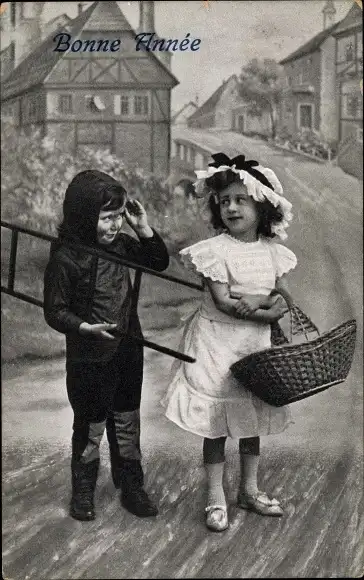 Ak Glückwunsch Neujahr, Schornsteinfeger, Mädchen mit Korb