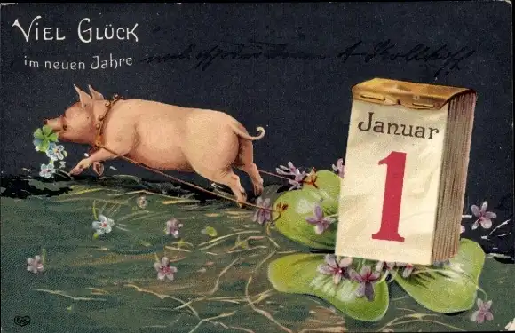 Ak Glückwunsch Neujahr, Schwein, Kleeblatt, Kalender, 1 Januar