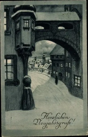 Ak Glückwunsch Neujahr, Stadtansicht, Wohnhäuser