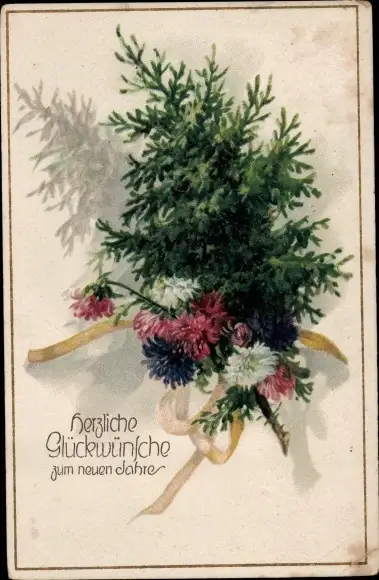 Ak Glückwunsch Neujahr, Tannenbaum mit Blumen