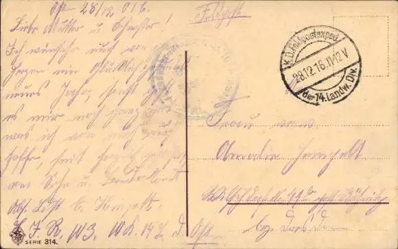 Zustand, siehe Scan, gelaufen, 1916 - ca 9 cm X 14 cm